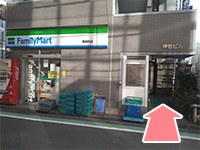 改札を出て左手に進むとエレベータがありますのでエレベータに乗って2回(最上階)まで行ってください。